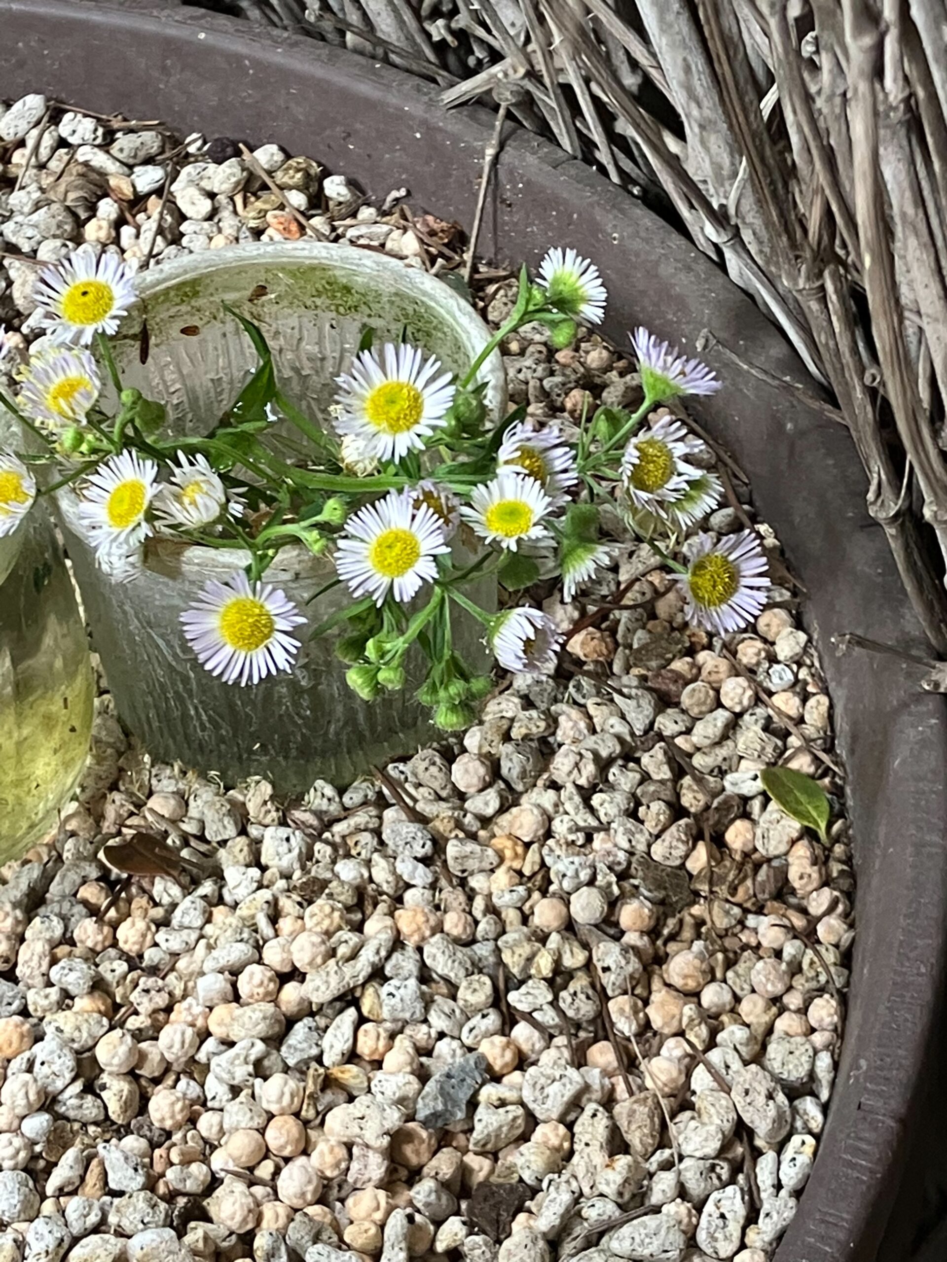 いつも娘さんが玄関先に可愛らしい草花を飾られています。