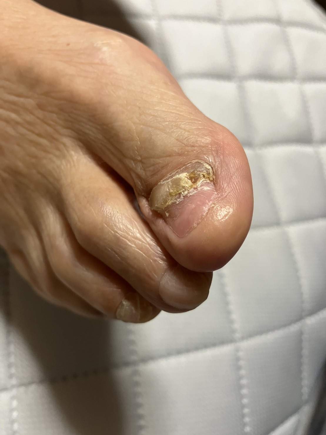 その後は、訪問時に巻き爪の空洞部分にやすりがけをして皮膚にあたらないようケアをしています。
