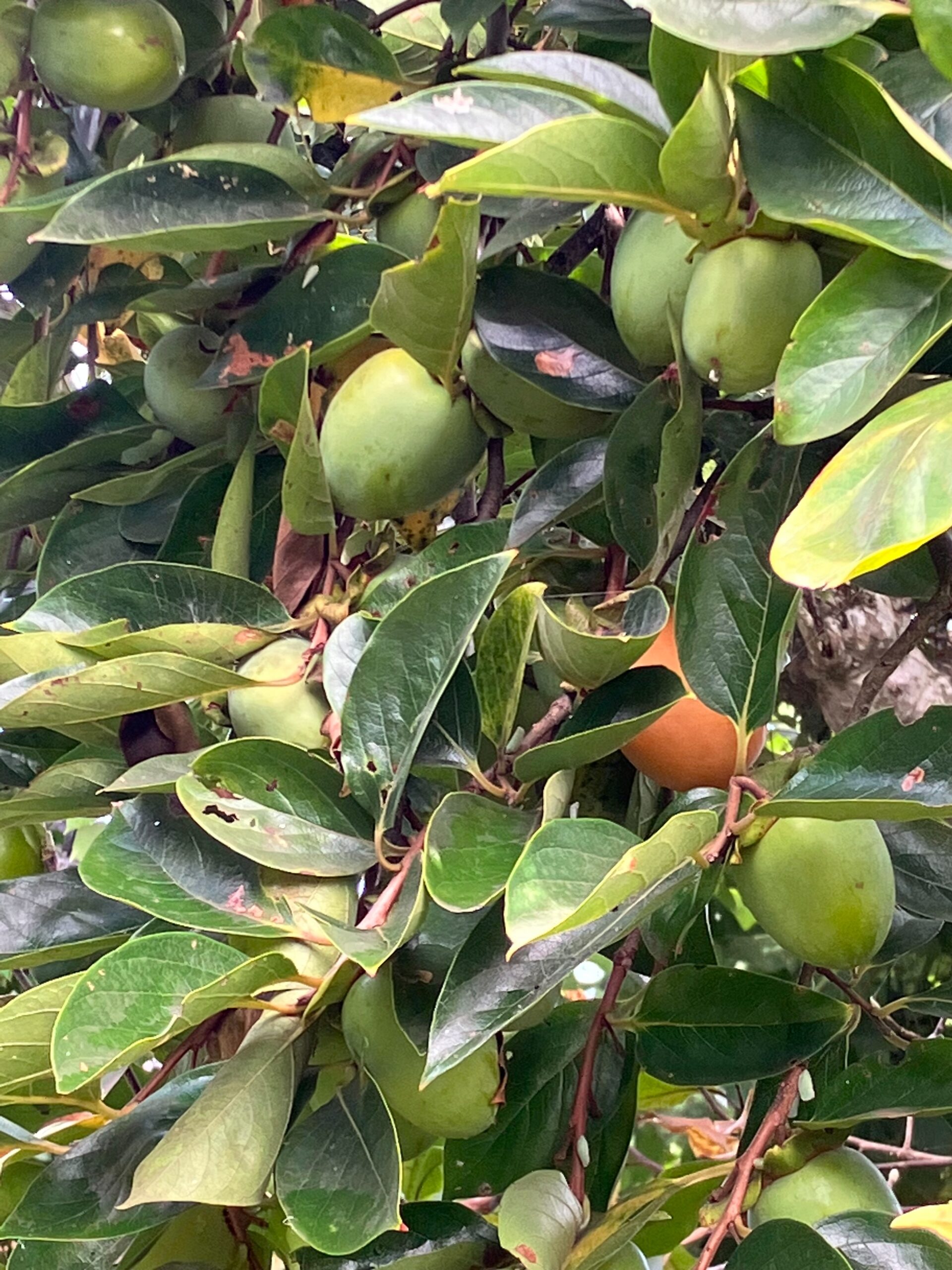 砥部町のこどもの城が見える広い畑では、柿やみかんなど秋の味覚がそろそろ収穫できそうで楽しみだそうです。