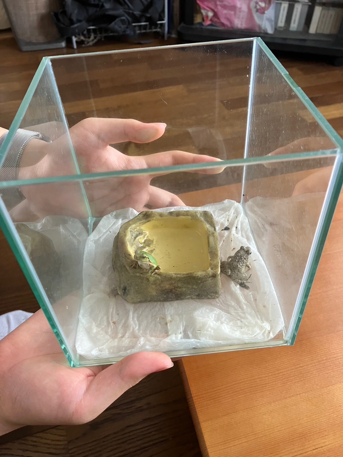 そして、散歩の途中で出会ったカエルを自宅で飼うようになりました。